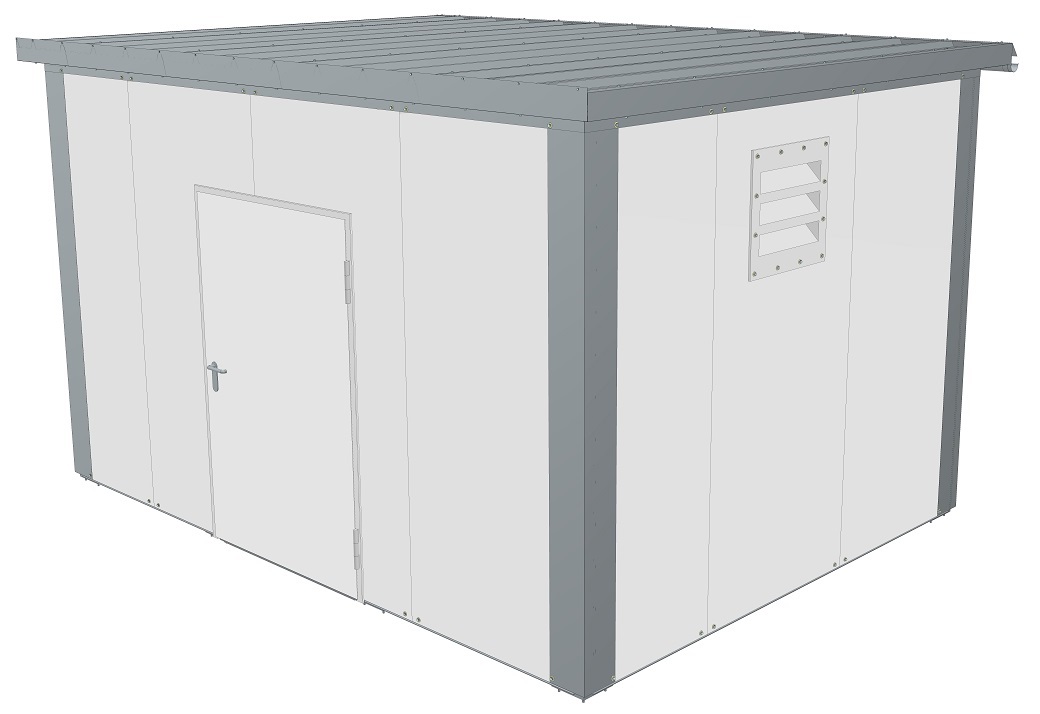 Trafohäuschen zur geschützten Unterbringung der Stromversorgungseinheit von E-Ladestationen.
